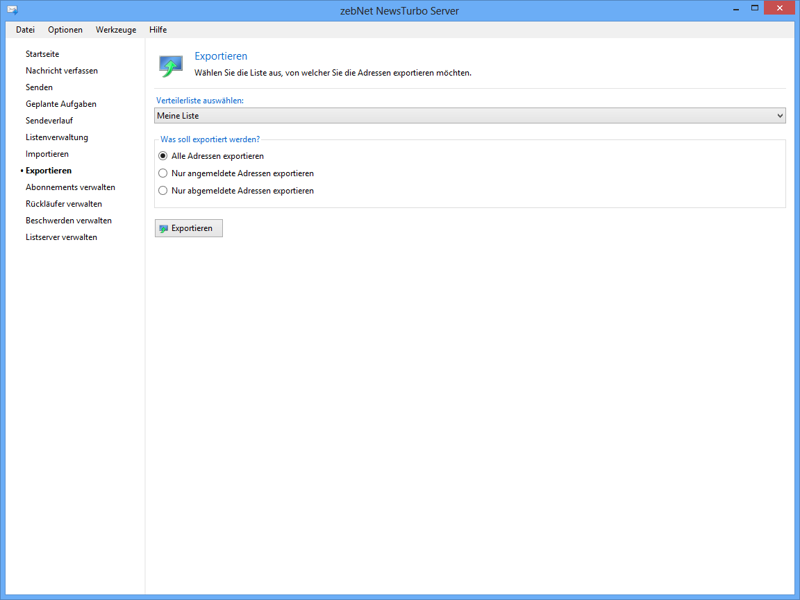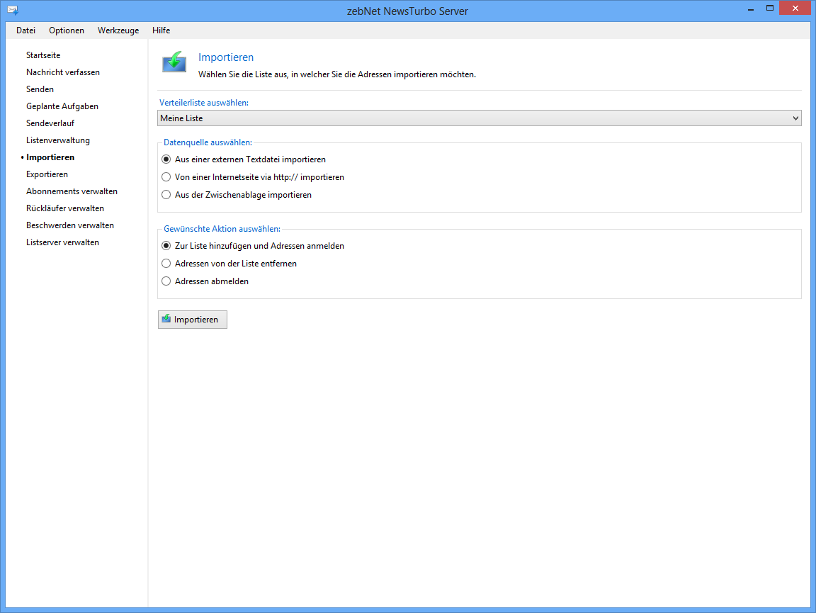 Erhalten Sie einen ersten Eindruck, wie sich die Arbeit mit NewsTurbo Server anfühlt. Bei jedem Bild handelt es sich um ein Vorschaubild. Klicken Sie einfach auf das Vorschaubild, um es zu vergrößern.